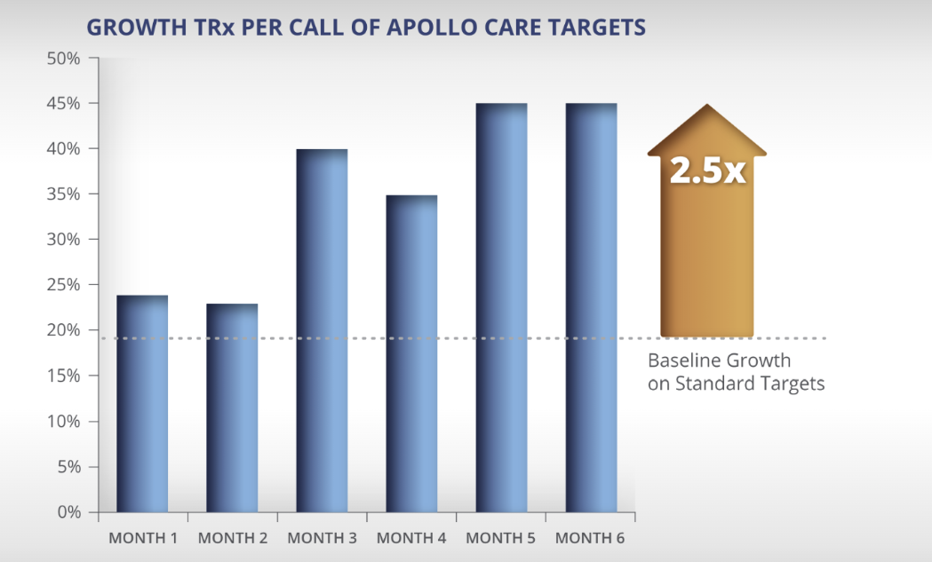 By aggregating copay, TRX performance, and field CRM data, Apollo Care’s Skylab advanced analytics platform identified opportunities to improve sales force reach and frequency.
